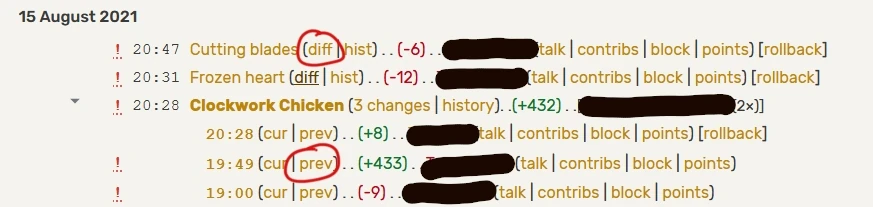 If several edits in a row need to be checked, it is helpful to use a web browser with tabbed browsing support, such as Opera, Firefox or Internet Explorer v7 or higher. This allows the status message to be sent to a separate tab, and continuing forward or back through the differences of a page.